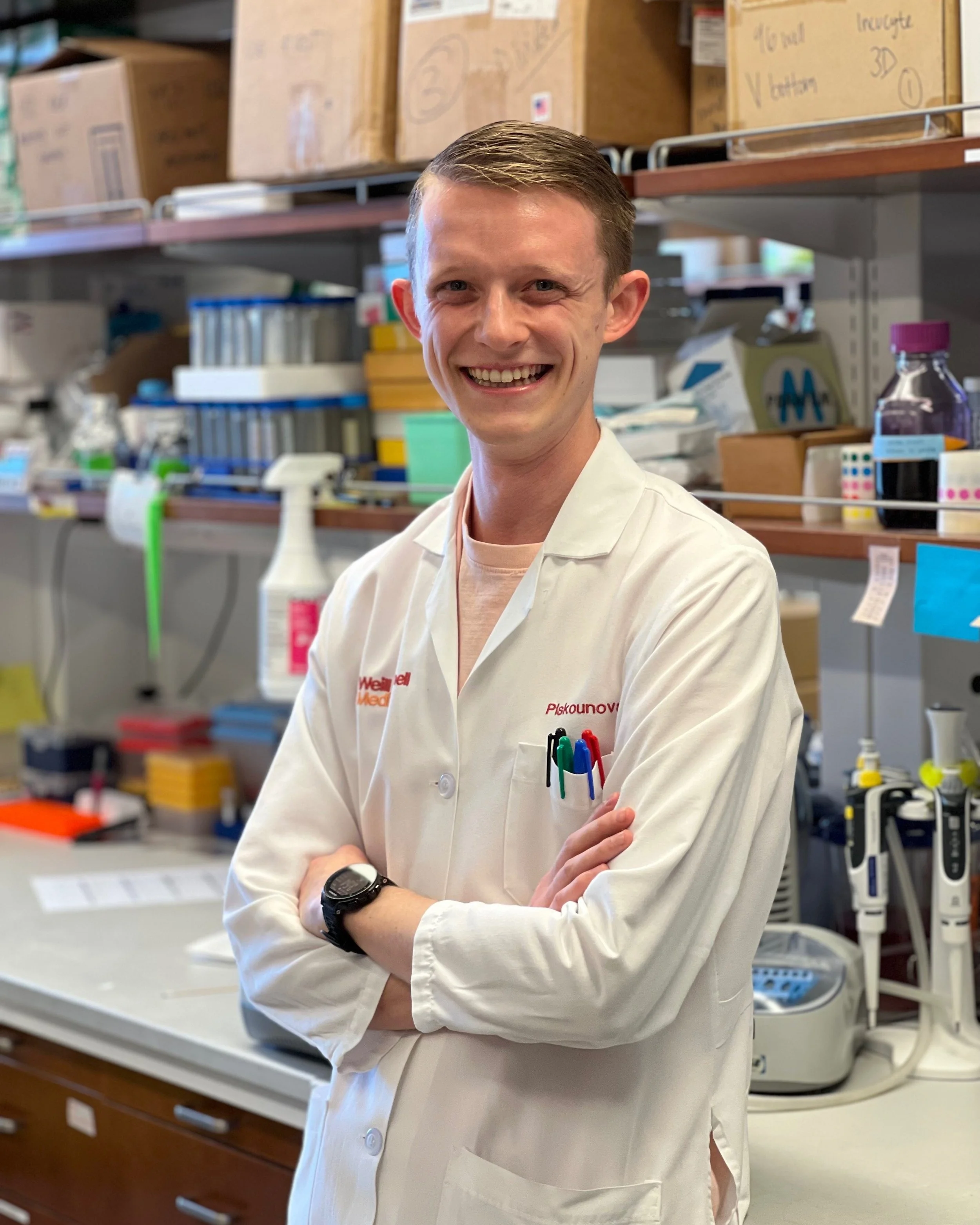 Matthew, originally from the suburbs of Philadelphia, joined the Piskounova Lab in October 2024 as a Research Assistant at the newly established lab at Beth Israel Deaconess Medical Center, a teaching hospital of Harvard Medical School. He graduated from Tufts University in 2023 with a Bachelor of Science in Biochemistry, where he conducted research on glutamate metabolism in traumatic brain injury using 3-D cell cultures. At the Piskounova Lab, Matthew is excited to apply his biochemistry background to explore the mechanisms of melanoma metastasis. As one of the first members of the Boston team, he looks forward to contributing to the lab's expanding research efforts. Outside of the lab, Matthew enjoys playing ultimate frisbee, exploring new music, and biking around the city to discover hidden foodie gems.
